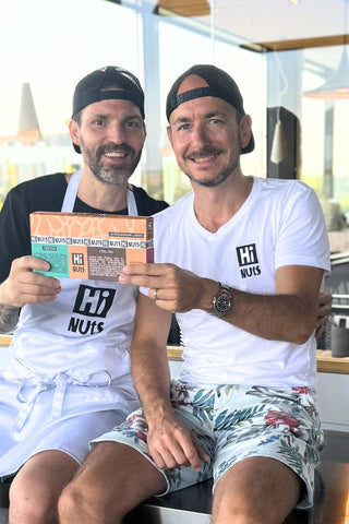 Wir sind HiNUtS – geboren aus jahrelanger Erfahrung in der Lebensmittelgroßindustrie. Wir wollten keinen Snack voller Zusätze, sondern echte Nährstoffe, die lange Energie geben. Zwei Jahre Tüftelei, eine alte Brotmaschine und viel Handarbeit später war’s so weit. Heute machen wir Frischnussriegel, die halten, was sie versprechen – pure Natur, purer Geschmack. 🥜💪