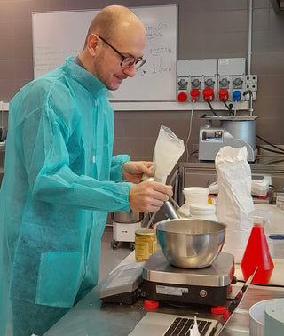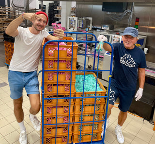 Nach zahlreichen Testläufen, vielen Mühen und noch mehr Herzblut wird der erste, perfekt abgestimmte Hinuts gemischt, geknetet und geformt und schließlich in bunt designte Folie gepackt.